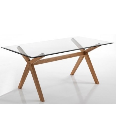 Refined table with an important base in solid oak, perfected by a marvelous transparent tempered glass glass top. Elegant and clean, embellishes your rooms giving a touch of prestige.