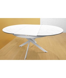 Beautiful table with extendable top in 11 mm thick glass ceramic, 50 cm extension in lacquered MDF, structure in white painted metal. A modern table that will give a refined and design style to your environment.
