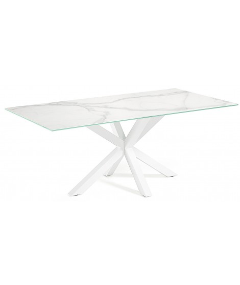 MIRIA 160 or 180 or 200 cm fixed porcelain glass top and white steel legs design table