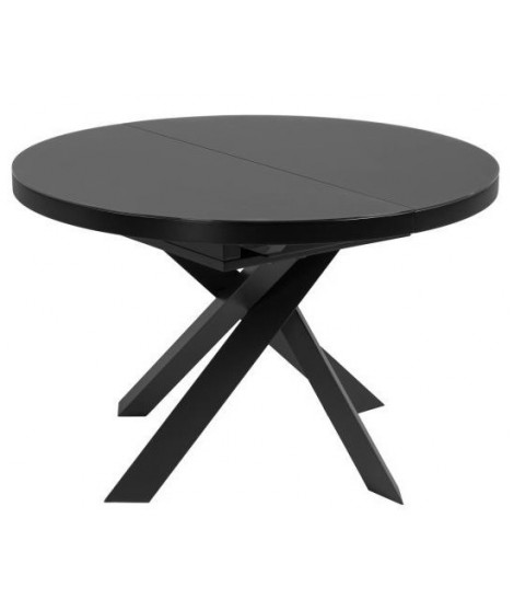 Practical and functional with easy sliding opening, it becomes from round to oval with an extension of 40 cm. Extendable table, of design and strong structural stability, opens very easily, with telescopic metal pull-out guides, sliding of the two half parts of the top and 40 cm extension opening with comfortable handle that facilitates extraction. A modern table, of great furnishing in your environment. Made with black glass top and painted steel legs. Important and of great style.