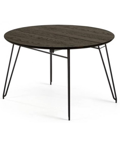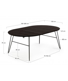 COVER extendable table diameter 120 reaches 200 cm with ash ash top and black metal legs