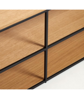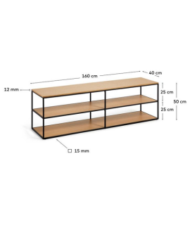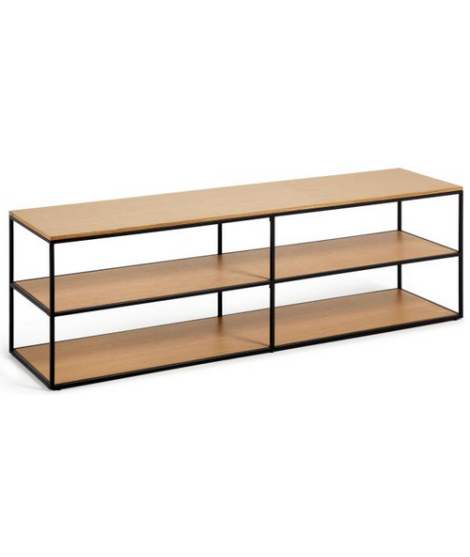 Elegant and with a modern design, a simple line that brings refinement to your decor. TV unit in walnut or oak veneer and matt black painted metal structure and adjustable feet. In the photo of the technical sheet there are all the measures. Below you will find all the complements of the same line.
