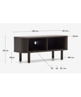 AFRO TV stand 120x50h cm with 2 sliding doors in ash dark finish with slat effect