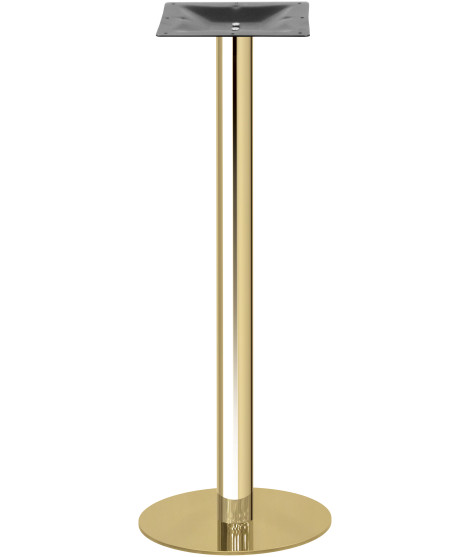 Favolosa base con colonna rotonda per tavolo in acciaio INOX ottonato h. 110 cm. Un design innovativo e raffinato, bello, pratico e resistente. Adatto per bar, gelaterie, caffè, ristoranti, locali sul lungomare, alberghi, stabilimenti balneari.