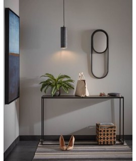 Affascinante consolle dalla linea essenziale, realizzata con piano porcellanato e struttura in acciaio nero. Meraviglioso genere minimalista.
