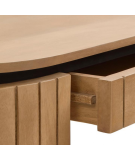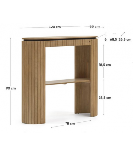 Linea accattivante per questa consolle elegante e prestigiosa. In legno massello di mango disposto a listelli accostati, rendendo questo mobile un pezzo unico, che trasuda essenzialità e raffinatezza. Un meraviglioso complemento d'arredo, che trasmette luminosità all'ambiente.