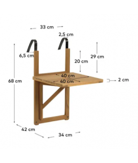 Bellissimo tavolino pieghevole da appendere all'occorrenza alla ringhiera, oppure piacevole per avere un appoggio in più in qualsiasi posto esterno della vostra casa, balcone o terrazzo. Realizzato in legno massello di acacia, è bello, pratico e versatile. Tutte le misure sono nella foto della scheda tecnica.
