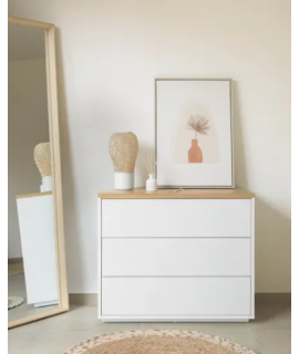 Affascinante comò dalla linea pulita ed essenziale, grazie alle misure ridotte è ideale per chi ha poco spazio. Fantastico per gli appassionati della raffinatezza e della tradizione. Realizzato con 3 cassetti laccati bianchi e piano impiallacciato rovere, grazie alla colorazione chiara conferirà al vostro ambiente molta luminosità.