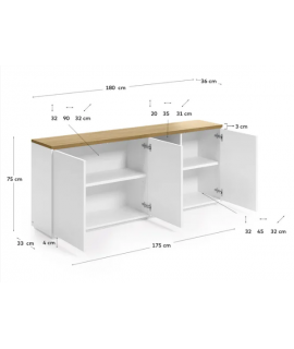 AYAGO madia 180x36 impiallacciato rovere e laccato bianco