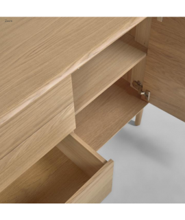 Per integrare con un pezzo particolare e di effetto, ecco una madia dal genere moderno, un look essenziale che ben risponde alle nuove esigenze d'arredo. Con struttura in legno di rovere impiallacciato, con 2 ante e 3 comodi cassetti, 2 più piccoli e 1 più grande. Elegante e raffinata in soggiorno, in cucina o in uno studio o all'ingresso. Sotto gli altri complementi della stessa linea da abbinare. Nella foto della scheda tecnica tutte le misure.