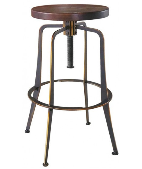 Affascinante sgabello dal sapore vintage industriale, particolare, ricercato e con una struttura solida in metallo verniciato effetto anticato e seduta girevole regolabile in altezza, in legno. Per dare un tocco retrò al vostro ambiente, facendo un salto nel passato ma con un design nuovo, rivisionato e reso attuale.