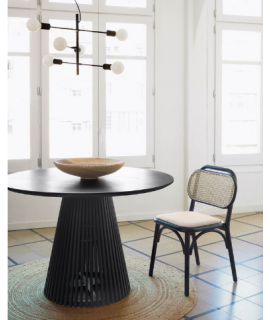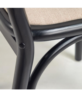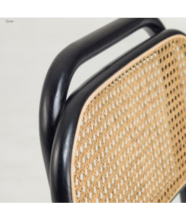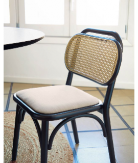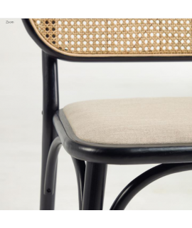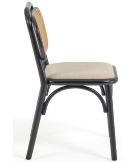 MORGAN sedia in legno massello di rovere nero schienale in rattan e seduta in tessuto idrorepellente