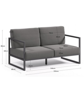 ALETRA in alluminio antracite e cuscini in tessuto idrorepellente sfoderabile lavabile divano 2 posti