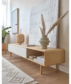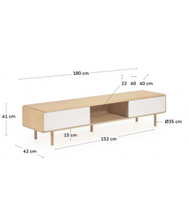 LENA mobile TV da 180 cm in legno massello e con 2 ante scorrevoli impiallacciato frassino
