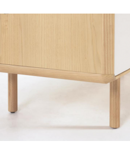 Raffinato mobile TV, una rifinita lavorazione artigianale che conferisce ricercatezza al vostro arredo. Realizzato con struttura e gambe in legno massello e con 2 ante impiallacciato frassino, frontale laccato bianco grigiastro e pratico foto passacavi. Un mobile TV comodo e sfizioso.