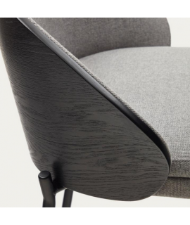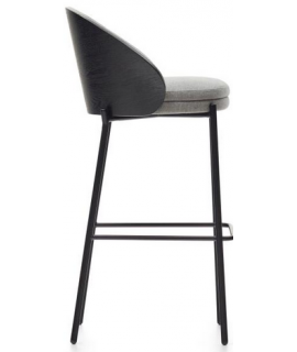 DEAM sgabello seduta h 77 cm impiallacciato frassino finitura scura in tessuto grigio e struttura in metallo nero