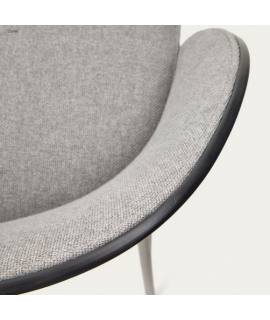 Bello e raffinato, sgabello dalla linea elegante che conferisce prestigio al vostro arredo. Realizzato con struttura in metallo nero opaco e impiallacciato frassino finitura scura, imbottito con rivestimento in tessuto cinigliato grigio chiaro. Molto comodo e di grande stile.