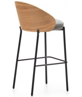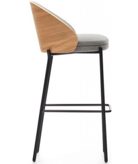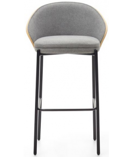 PANTEON sgabello seduta h 77 cm impiallacciato frassino finitura naturale in tessuto grigio chiaro e struttura in metallo nero