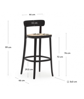 BENFIT sgabello h seduta 76 cm in legno di faggio nero e rattan