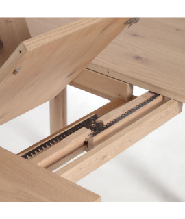 Un tavolo importante, allungabile con semplice apertura a farfalla. Realizzato con gambe in legno massello di rovere naturale e piano impiallacciato rovere. Dal design raffinato.