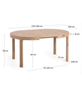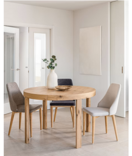 ACELER tavolo Ø 120 cm allungabile 170 cm struttura in legno massello di rovere e piano impiallacciato rovere