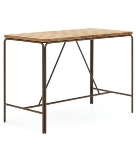 Un tavolo alto molto attraente, gioca sui contesti delle sue rifiniture, dal disegno minimalista semplice e di classe. Realizzato con piano dogato in legno massello di acacia e gambe in acciaio marrone, molto resistente alle intemperie. Un tavolo alto comodo per esterno, che decora meravigliosamente e lo potete combinare con gli altri elementi della stessa linea che troverete sotto.