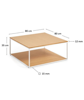 ACABA tavolino 80x80 cm impiallacciato rovere e struttura in metallo bianco