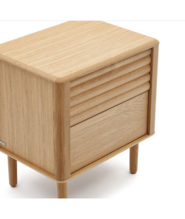 Per integrare con un pezzo particolare e di effetto, ecco un comodino dal genere moderno, un look essenziale che ben risponde alle nuove esigenze d'arredo. Con struttura in legno di rovere impiallacciato, con 2 comodi cassetti. Sotto gli altri complementi della stessa linea da abbinare. Nella foto della scheda tecnica tutte le misure.