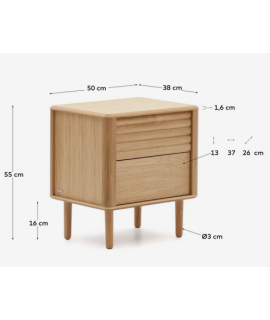 LANIA comodino 2 cassetti in legno massello di rovere naturale design casa living
