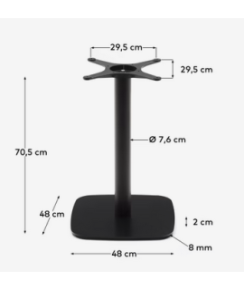 Bellissima base con colonna rotonda in acciaio verniciato nero. Base quadrata della misura di 48x48 cm, con piedini sottobase regolabili. Il basamento è alto 70,5 cm, è predisposto per un piano top rotondo massimo 90 cm di diametro e per un piano quadrato cm 90x90. Base per tavolo per bar, negozi, gelaterie, caffè, ristoranti, locali sul lungomare, alberghi, stabilimenti balneari. Tutte le misure nella foto della scheda tecnica scorrendo con la freccetta tra le foto.