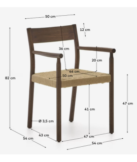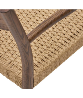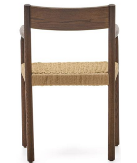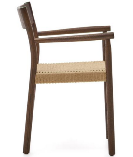 HELKE sedia con braccioli in legno massello di rovere finitura noce e seduta in corda