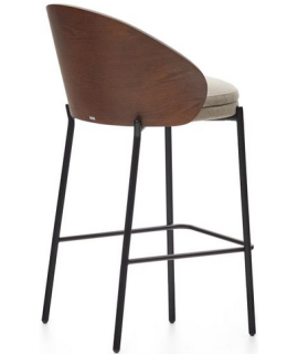 OWENS sgabello h seduta 65 cm impiallacciato frassino finitura wengé in tessuto marrone chiaro e struttura in metallo nero