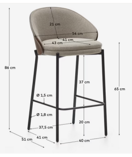 Uno sgabello dal design moderno, bello e comodo, adatto per ogni tipo di arredo. Raffinato e grintoso, ma oltre al design è anche molto confortevole. Seduta altezza 65 cm. Struttura in metallo nero opaco e impiallacciato frassino finitura wengé, imbottito con rivestimento in tessuto ciniglia marrone chiaro. Di grande prestigio e solidità. Nella foto della scheda tecnica ci sono tutte le misure scorrendo con le freccette. Sotto troverete altri complementi della stessa linea da abbinare.