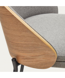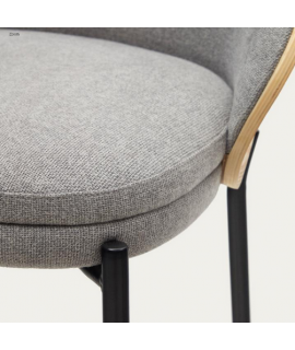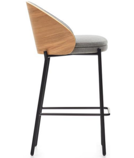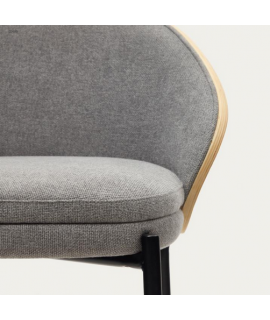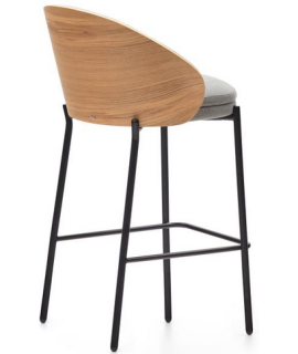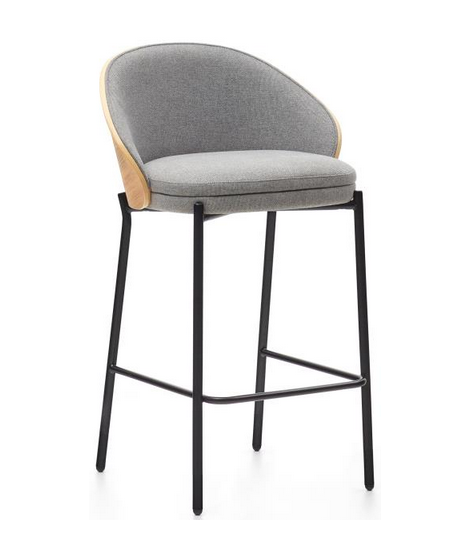 LEOPOLDO sgabello seduta h 65 cm impiallacciato frassino finitura naturale in tessuto grigio chiaro e struttura in metallo nero