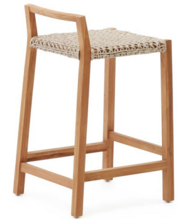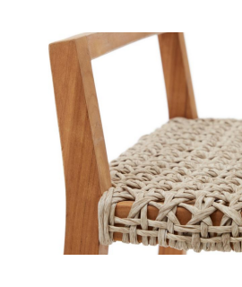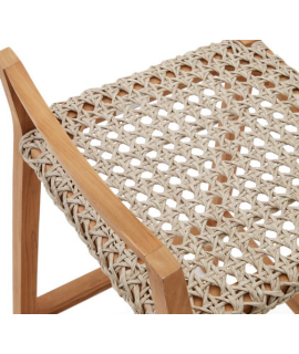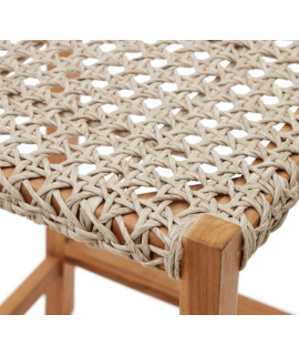 CHIN sgabello altezza seduta 67 cm in legno massello di teck e corda per esterno