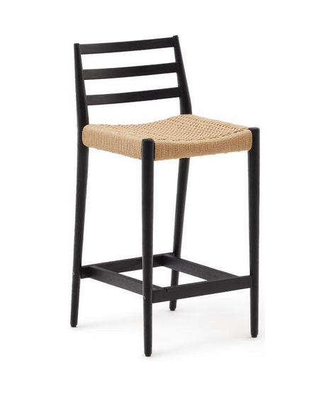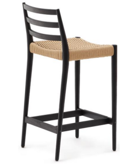 Uno sgabello elegante, dallo stile coloniale, con comodo schienale. Realizzato in legno massello di rovere con finitura nera e corda intrecciata sulla seduta. Trasmette una piacevole sensazione di comfort e benessere all'ambiente, grazie anche alle materie prime con la quale è realizzato che conferiscono un ulteriore pregio. Adatto per esterno e per interno.