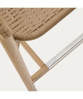 Favoloso sgabello con struttura in legno massello di acacia, finitura naturale, trattato con olio PNZ per una lunga durata e protezione UV e in corda di poliestere intrecciata a mano, resistente ai raggi UV e alle intemperie. Ogni pezzo combina la nobiltà del legno massiccio di acacia, con una finitura spazzolata, che ne mette in risalto i toni naturali e le venature uniche, rendendo ogni pezzo diverso dall'altro. Portata massima 120 Kg. Nella foto della scheda tecnica, scorrendo con le freccette, ci sono tutte le misure. Sotto ci sono i complementi della stessa linea.