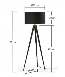 • Perfetta per un arredamento moderno, classico o nordico. Lampada da terra realizzata con treppiedi in metallo verniciato nero e paralume in tessuto nero. Per lampada attacco grande E27 (non compresa). Tutte le misure sono nella foto della scheda tecnica.