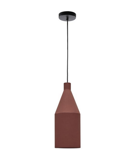Lampada a sospensione realizzata in metallo verniciato terracotta con cavo rivestito in tessuto lungo 140 cm. Dal design moderno è adatta per un arredo industriale, miniamal, nordico, moderno, vintage. Predisposta per lampada attacco grande E27 (non inclusa), a basso consumo, a led oppure ad incandescenza. Tutte le misure nella foto della scheda tecnica. Sotto troverete gli altri complementi della stessa linea da abbinare.