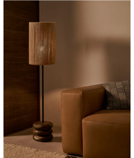 DEMETRA lampada da terra in legno massello di acacia finitura scura e in juta fibra naturale