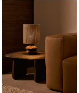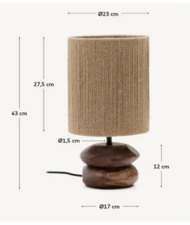 SPOT lampada da tavolo in legno massello di acacia finitura scura e in juta fibra naturale