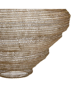 Una lampada da soffitto in metallo dorato, che dona illuminazione attraverso un incantevole reticolo intrecciato a mano. Perfetta per un gusto industriale, minimal, nordico, moderno, vintage. Predisposta per lampada (non inclusa) ad attacco grande E27, a basso consumo, a led oppure ad incandescenza. Classe energetica A++ Tutte le misure sono nella foto della scheda tecnica.