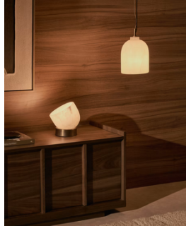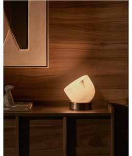 Raffinata lampada da tavolo, elegante e molto funzionale. Realizzata in alabastro, un materiale di origine naturale che, con la luce, crea acque e ombre irregolari che aggiungono calore all'ambiente e base in metallo con finitura in ottone. Il paralume è girevole e può essere collocato in diverse posizioni.