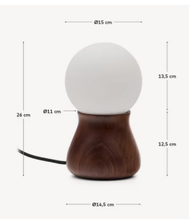 NENA lampada da tavolo in legno di noce e sfera di vetro satinato design