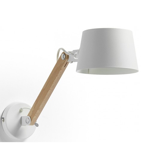Elegante e raffinata lampada applique, un signorile gusto scandinavo sofisticato, per chi ama accessori d'arredo semplici ma ricercati. Realizzata con braccio in legno naturale e paralume in metallo bianco. Uno stile unico che conferirà al vostro ambiente un'atmosfera magica.
