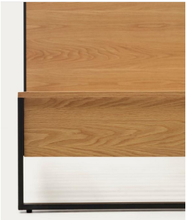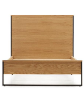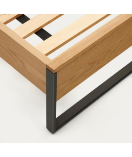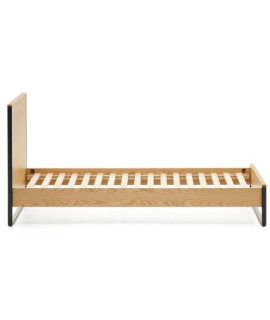 TANA letto singolo con rete 90x190 in impiallacciato rovere e gambe in acciaio nero