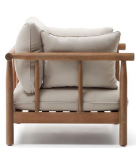 Meravigliosa poltrona realizzata in legno massello di eucalipto e cuscini inclusi in tessuto idrorepellente e sfoderabili. L'arredo di questa linea conferisce un aspetto caldo ed elegante ai vostri ambienti. Un tocco di raffinatezza ed eleganza per il vostro ambiente di conversazione interno ed esterno. Sotto altri complementi della stessa linea. Tutte le misure sono nella foto della scheda tecnica.