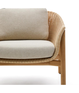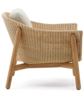 Raffinata poltrona in legno massello di teak, minuziosa lavorazione in rattan sintetico e cuscini di seduta e di schienale sfoderabili inclusi. Resistente e solida, bella e dal carattere deciso, è adatta per interno o esterno. Conferisce all'ambiente unicità e originalità.