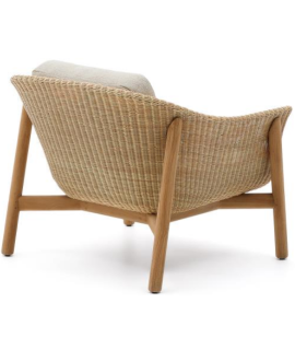 DONALD poltrona in legno massello di teak e rattan sintetico e cuscini sfoderabili per esterno e per interno