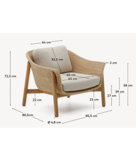 Affascinante poltrona, ideale per giardino o terrazzo, ma piacevole anche in soggiorno o su una bellissima veranda. Realizzata artigianalmente, bella, raffinata e molto resistente, con struttura in legno massello di teak che si ottiene attraverso un processo eco-compatibile, che prevede un abbattimento degli alberi disciplinato e responsabile. Il teck è un legno pregiato, conosciuto e apprezzato per la sua grande resistenza e le sue venature eleganti. In rattan sintetico e cuscini sfoderabili inclusi, resistente ai raggi UV. Portata massima 120 Kg. Tutte le misure nella foto della scheda tecnica scorrendo con la freccetta nelle foto. Sotto troverete altri complementi della stessa linea da abbinare.